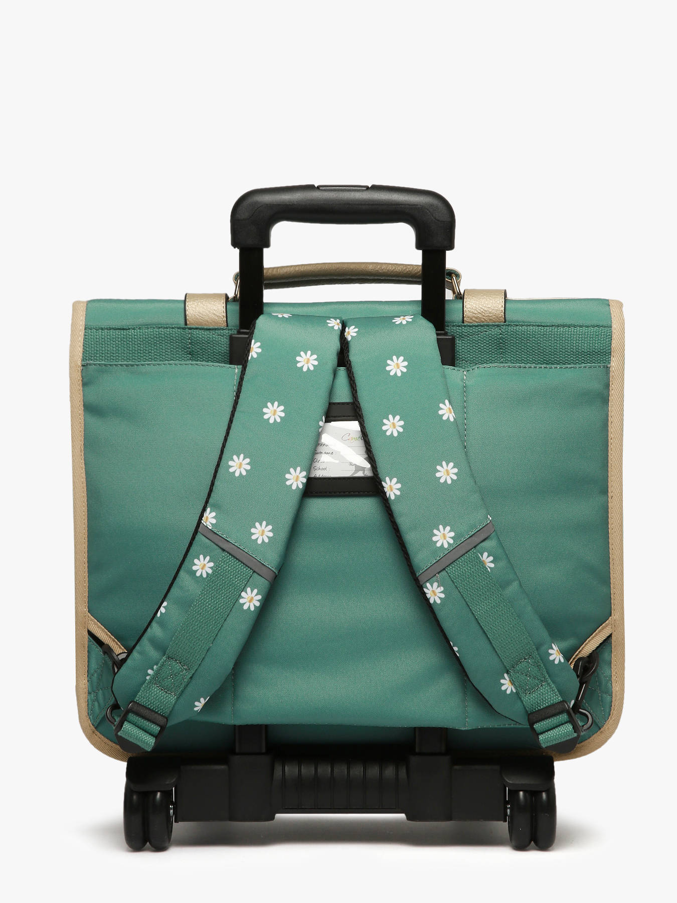 41 cm - 31 liter - 2.6 kg ~ Deze 41 cm trolley-schooltas met drie vakken uit de Vintage Fantasy-lijn van Caméléon is ideaal voor groep 5 en 6. We houden van deze schooltas vanwege de grote opbergruimte: hij heeft drie vakken waarin schriften en ordners tot 32x29x7 cm passen. Ook is er een binnenvak met ritssluiting. Aan de buitenkant zijn er twee voorvakken met ritssluiting en een zijvak voor een drinkfles. Voor de veiligheid van uw kind is er een reflecterende strip aan de voorkant aangebracht. De bodem en zijkanten zijn verstevigd, wat zorgt voor dagelijks gebruiksgemak. De tas kan ook als rugzak worden gedragen dankzij afneembare schouderbanden die in het achtervak opgeborgen kunnen worden, en een gewatteerde beschermlaag bij de wielen om de rug van uw kind te beschermen. Voor optimale ondersteuning zijn de schouderbanden en de rug gewatteerd. Als extraatjes heeft deze schooltas een naamlabel, een gratis liniaal en een Caméléon-sleutelhanger aan het handvat!