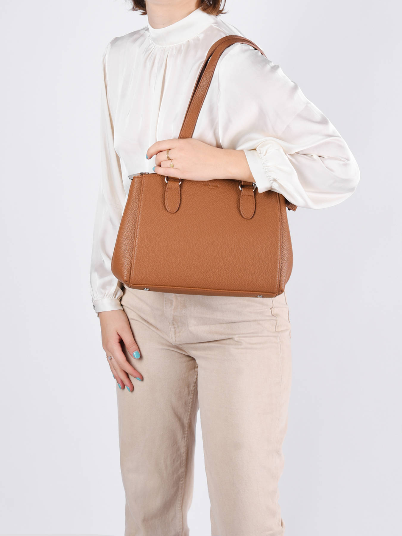 Deze ruime schoudertas uit de Madrid collectie van Hexagona is perfect voor dagelijks gebruik! Deze shopper met kreeg een mooie grainé lederlook, afgewerkt met zilverkleurige accenten. Dit model bestaat uit drie gescheiden ritsvakken, waar u uw spulletjes veilig en overzichtelijk in kunt opbergen. Ook aan de achterkant is een extra ritsvakje voorzien. Dankzij de twee lange hengsels kunt u deze schoudertas in de hand of losjes over de schouder dragen.