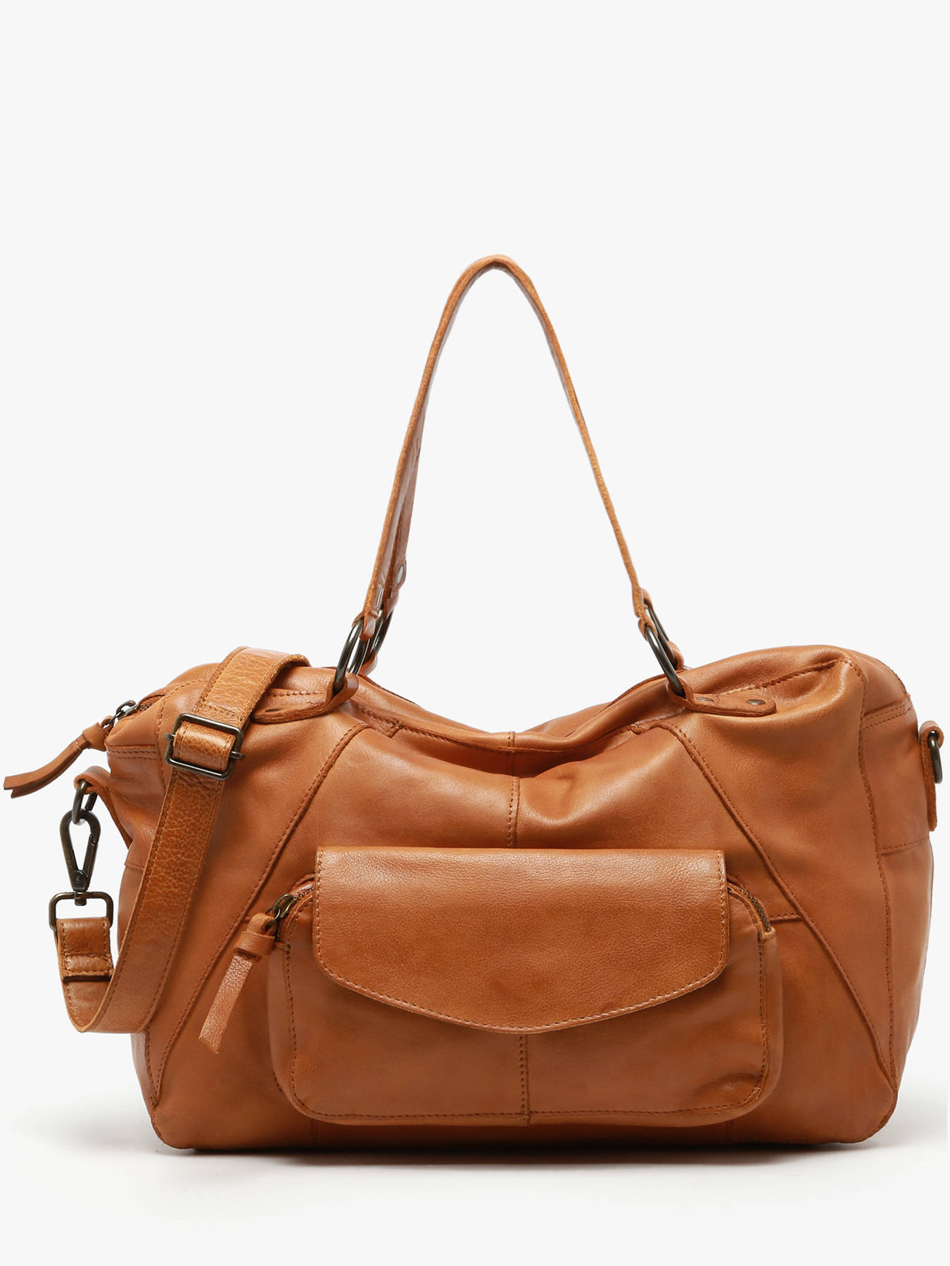 Deze stijlvolle handtas uit de collectie Naina van Pieces kan over de schouder of gekruist worden gedragen alsook in de hand. Zeer praktisch model om uw dagelijkse spullen steeds bij de hand te hebben. Deze tas beschikt over een groot opbergvak vooraan afgesloten met een flap alsook drie opbergvakjes binnenin waarvan één met rits. Het grote compartiment is ideaal voor vrouwen die dagelijks veel spullen moeten meenemen. Een mooie tas vervaardigd van kwalitatief leer en zeer functioneel dankzij de afneembare schouderriem.
